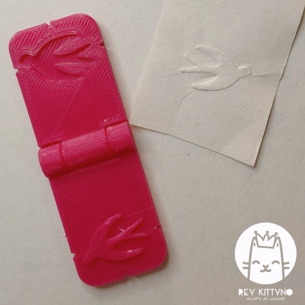 Selllo para hacer relieve sobre papel (gofrado). Se recomienda en superficies de papel reciclado o papel de algodón. Tip para que te quede perfe, le tirás con agua (en forma de spray) antes. Impresos en 3d.