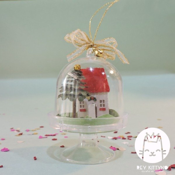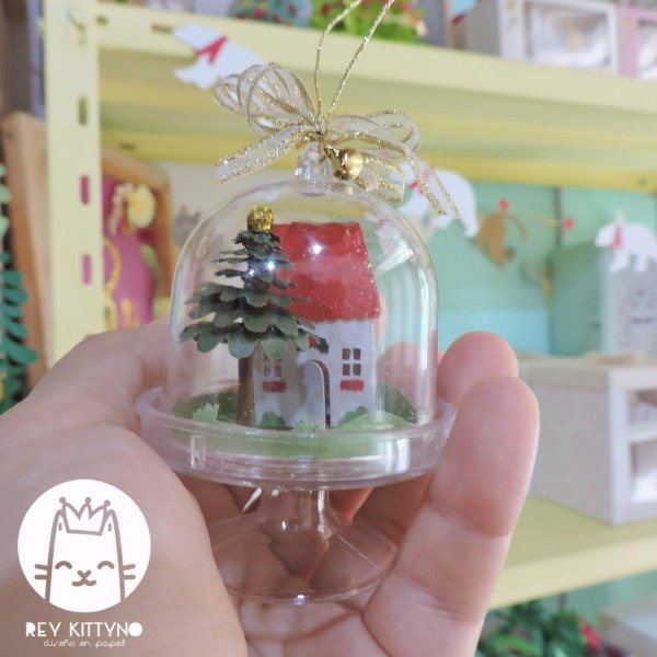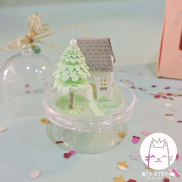 Burbujas navideñas con casita y arbolito mini. Realizado en papeles texturados, calados y dibujados.