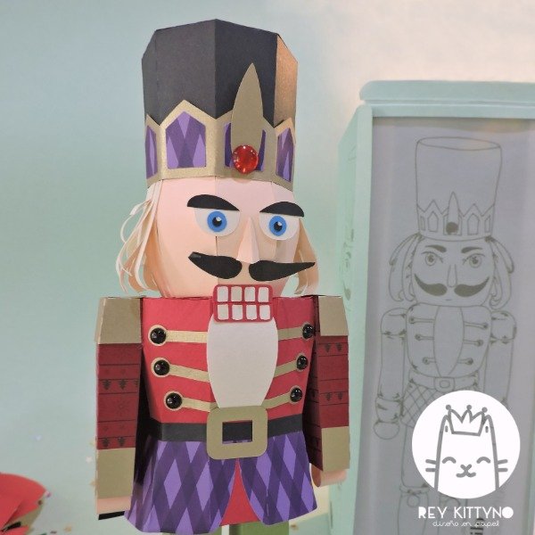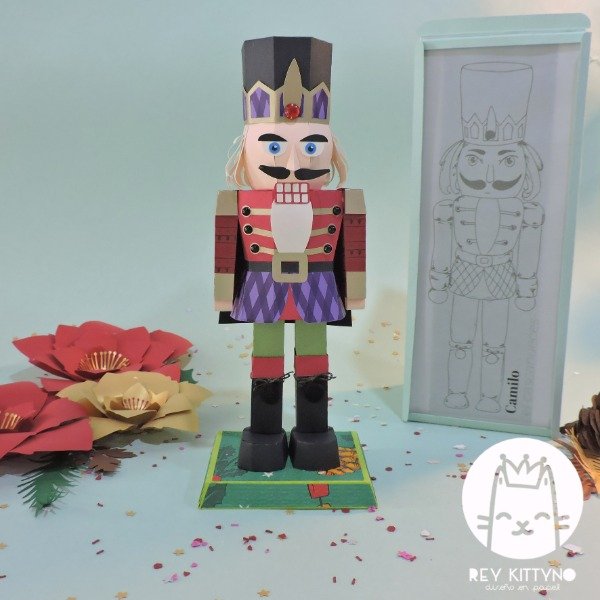 Camilo el cascanueces, es una figura en 3d hecha todita en papel. Con una mezcla de papeles lisos, texturados e impresos. Todos los papeles que uso para mis trabajos son especiales coloreados en masa importados.