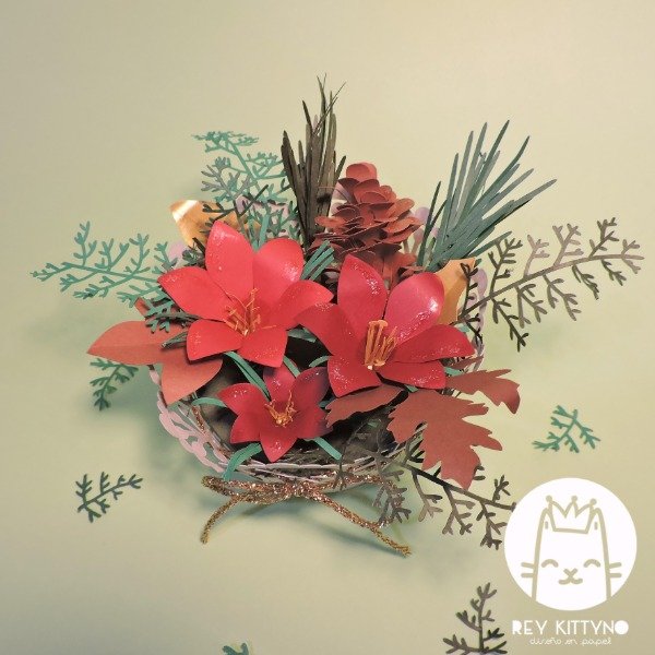 Centro de mesa. Realizado en papeles especiales coloreados en masa importados.