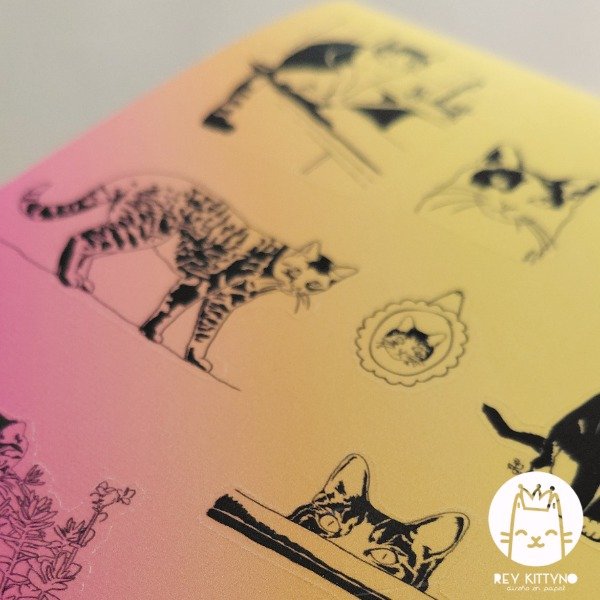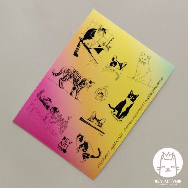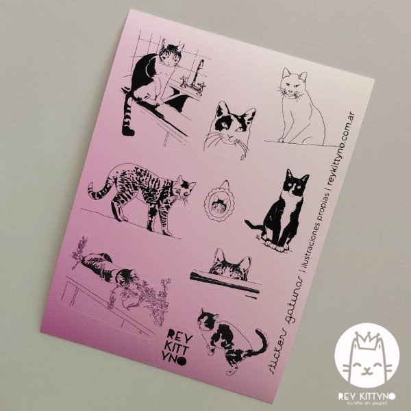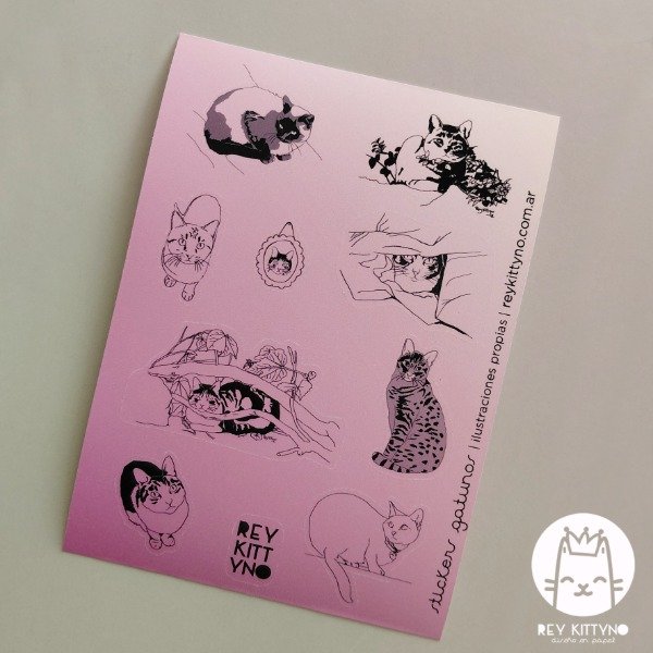 Ilustraciones propias. Forman parte de la colección de ilustraciones gatunas compuesta por stickers, papel carta, sobres, clips, cuadernos y mucho más que sigue en proceso.